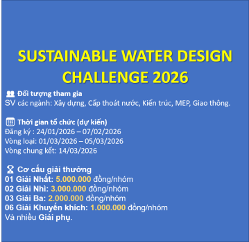 Cuộc thi “Sustainable Water Design Challenge 2026”, sân chơi học thuật dành cho sinh viên khối ngành Xây dựng – Kiến trúc – Cấp thoát...