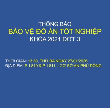 BẢO VỆ ĐỒ ÁN TỐT NGHIỆP KHÓA 2021 – ĐỢT 3 THỜI GIAN: 13:30, THỨ BA NGÀY 27/01/2026. ĐỊA ĐIỂM: P. L810 & P. L811...