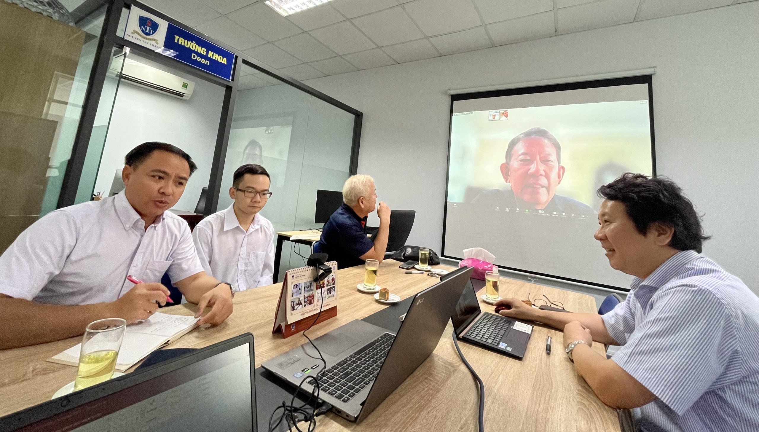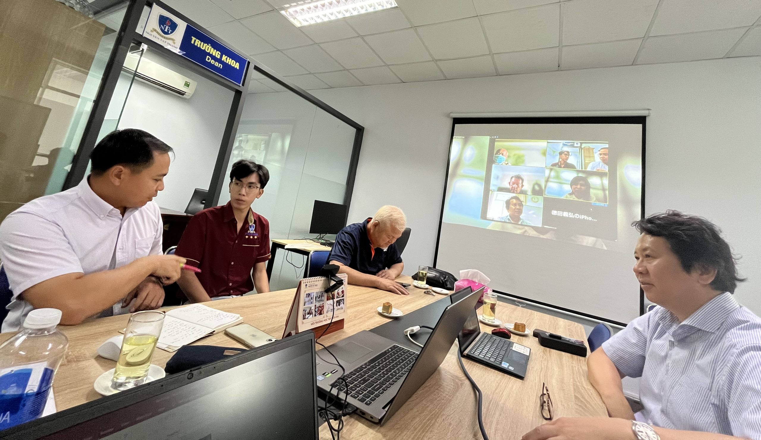 Khoa KTXD (bên trái) trao đổi cùng phía Daishin và Daishin Vietnam