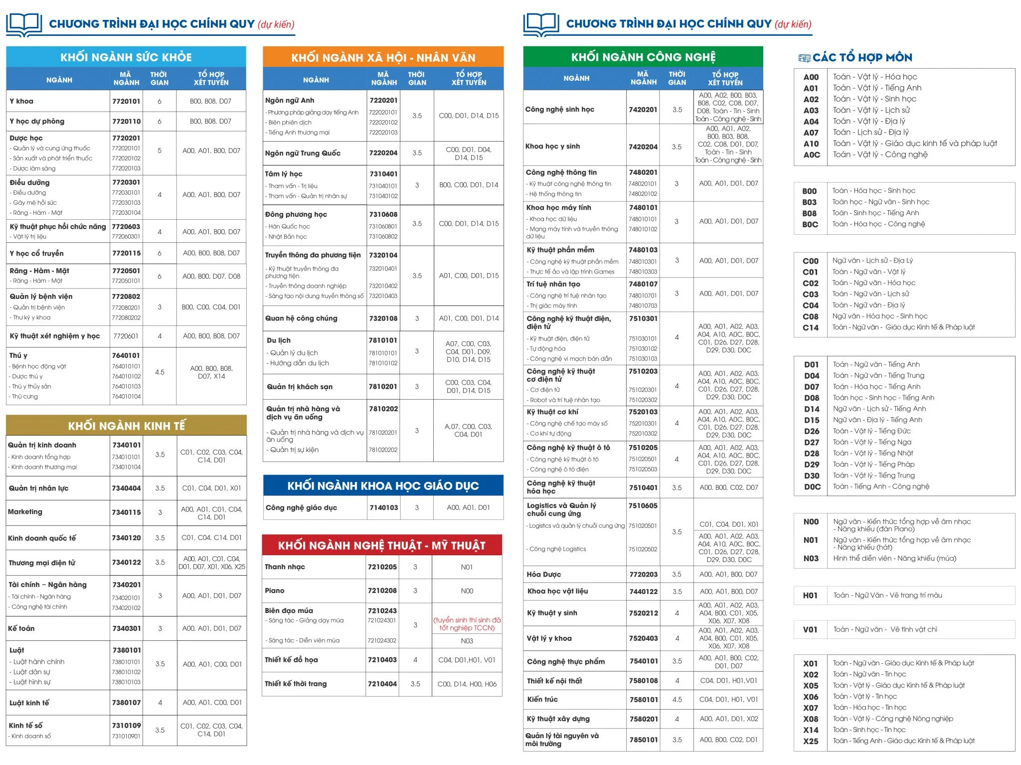 Lưu ý: Các ngành thuộc khối khoa học sức khỏe (Y khoa, Răng – Hàm – Măt, Dược học, Y học dự phòng, Điều dưỡng, Kỹ thuật xét nghiệm y học, Kỹ thuật phục hồi chức năng) xét theo quy định về ngưỡng đảm bảo chất lượng đầu vào của Bộ GD&ĐT.