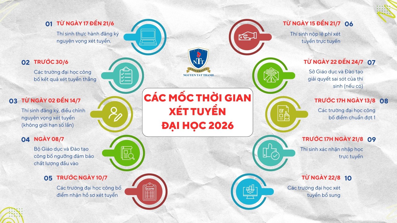 Năm 2026, Trường Đại học Nguyễn Tất Thành nhận hồ sơ đăng ký xét tuyển tất cả các thí sinh đã tốt nghiệp THPT theo quy chế tuyển sinh của Bộ GD&ĐT ban hành.