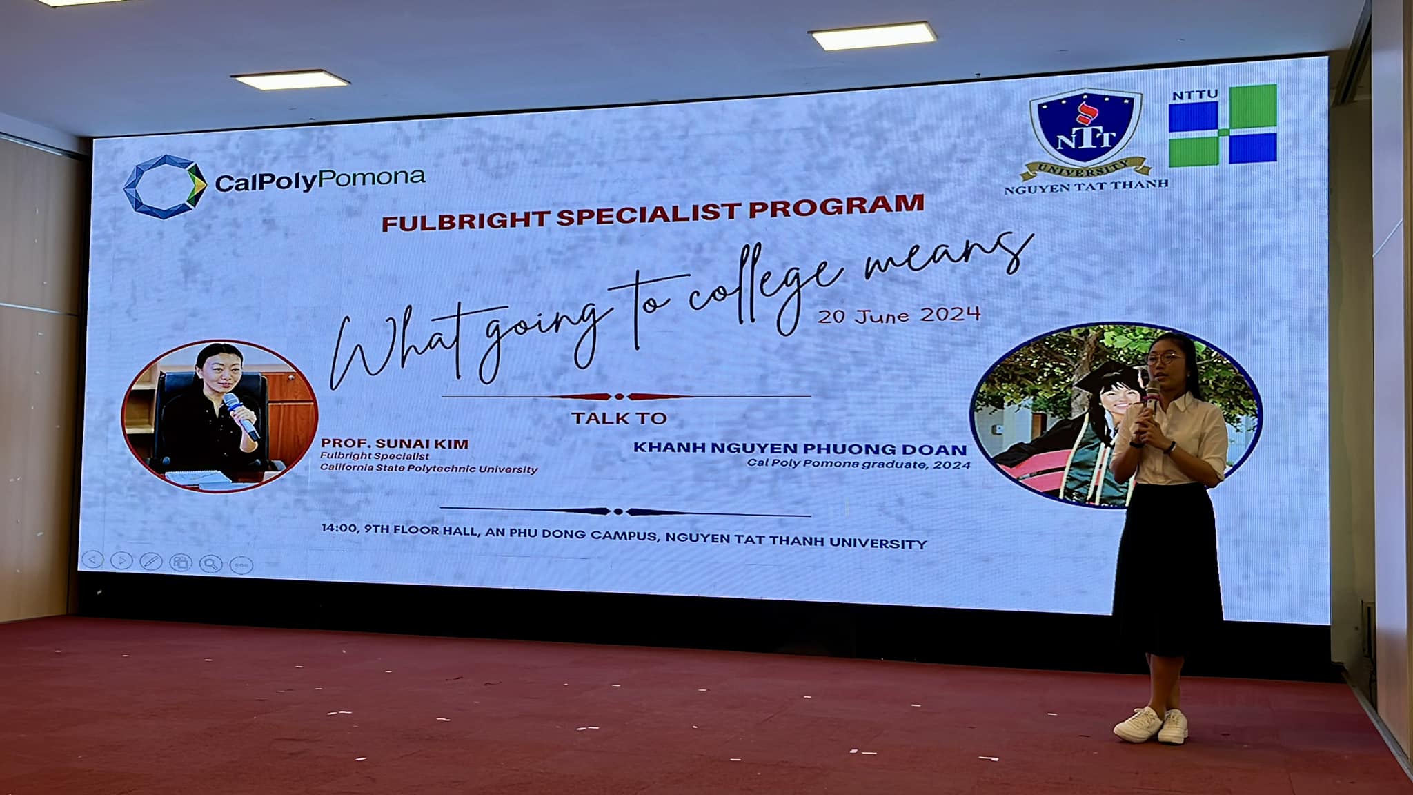 Bạn Đoàn Nguyễn Phương Khanh vừa tốt nghiệp từ Cal Poly Pomona năm 2024 ngành Kỹ thuật xây dựng chia sẻ kinh nghiệm du học với sinh viên NTTU