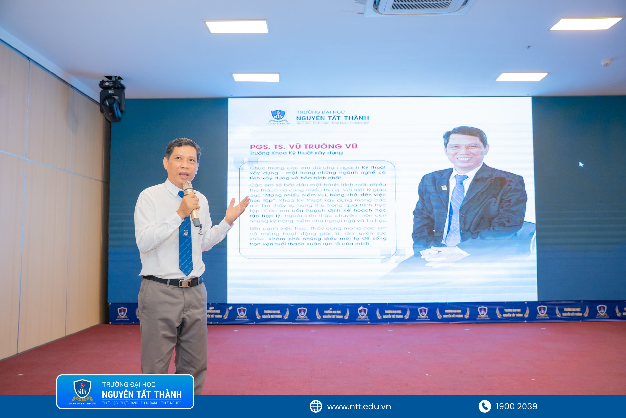 Chiều ngày 18/12/2025, tại Hội trường tầng 9 – Trường Đại học Nguyễn Tất Thành, Khoa Kỹ thuật xây dựng (KTXD) đã tổ chức thành công Chương trình Chào đón Tân sinh viên Khóa 2025, mở ra hành trình đại học đầy hứng khởi cho các tân kỹ sư tương lai.