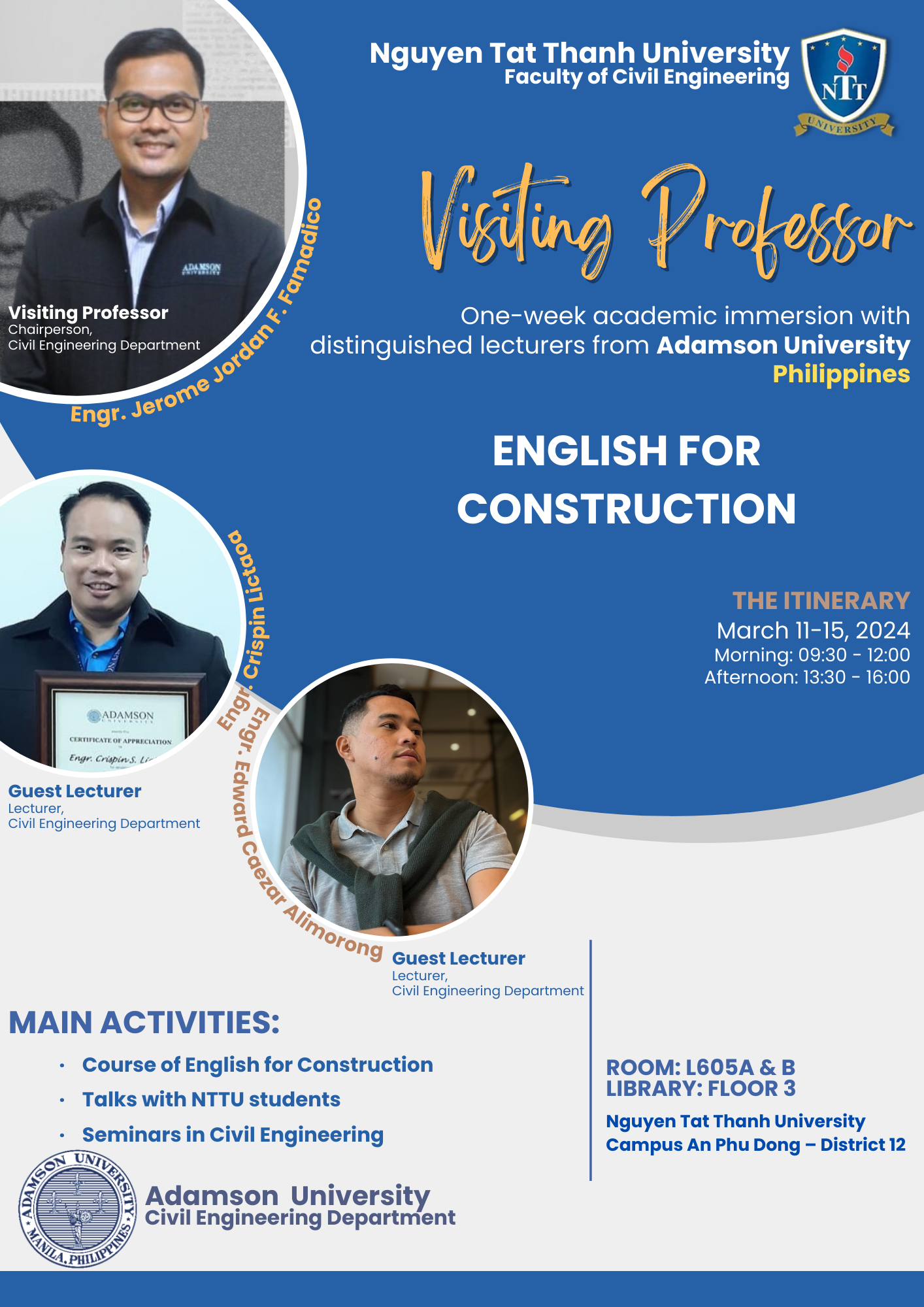 One-week academic immersion with distinguished lecturers from Civil Engineering Department – Adamson University – The Philippines