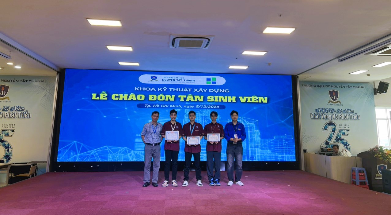 Ngày 05/12/2024, Khoa Kỹ thuật xây dựng (KTXD) thuộc Trường Đại học Nguyễn Tất Thành (NTTU) đã tổ chức buổi lễ chào đón tân sinh viên khóa 2024 (K24) đến từ hai ngành học: Kỹ thuật xây dựng và Kỹ thuật xây dựng công trình giao thông. Trong không khí ấm áp và tràn đầy năng lượng, các bạn tân sinh viên đã được chào mừng bởi Ban Chủ nhiệm Khoa, các giảng viên, đại diện Hội Sinh viên NTTU, cùng các anh chị khóa trên, đánh dấu bước khởi đầu cho hành trình đại học của mình.