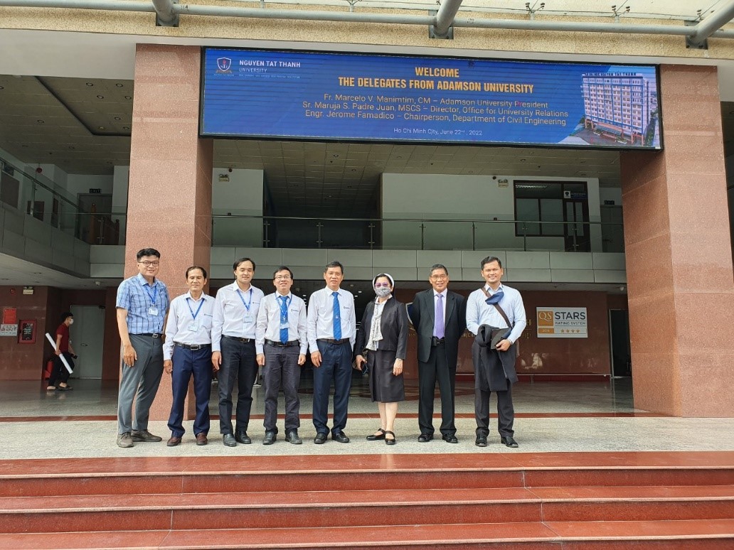 Tham gia lễ ký kết, về phía trường Đại học Nguyễn Tất Thành, đại diện là TS. Trần Ái Cầm – Hiệu trưởng, PGS.TS. Vũ Trường Vũ – Trưởng Khoa Kỹ thuật xây dựng (KTXD), ThS Lê Quang Khánh – Trưởng Phòng Hợp tác quốc tế, ThS. Lê Hữu Vy – Phó Trưởng Khoa KTXD, ThS. Nguyễn Quốc Trung – Phó Trưởng Khoa KTXD cùng các giảng viên của Khoa và Phòng. Về phía Trường Đại học Adamson, đại diện là Cha sứ Marcelo V. Manimtim, CM – Hiệu trưởng, Sơ Maruja S. Padre Juan – Giám đốc Phòng Quan hệ quốc tế, Ths. Jerome Famadico – đại diện Khoa Xây dựng.
