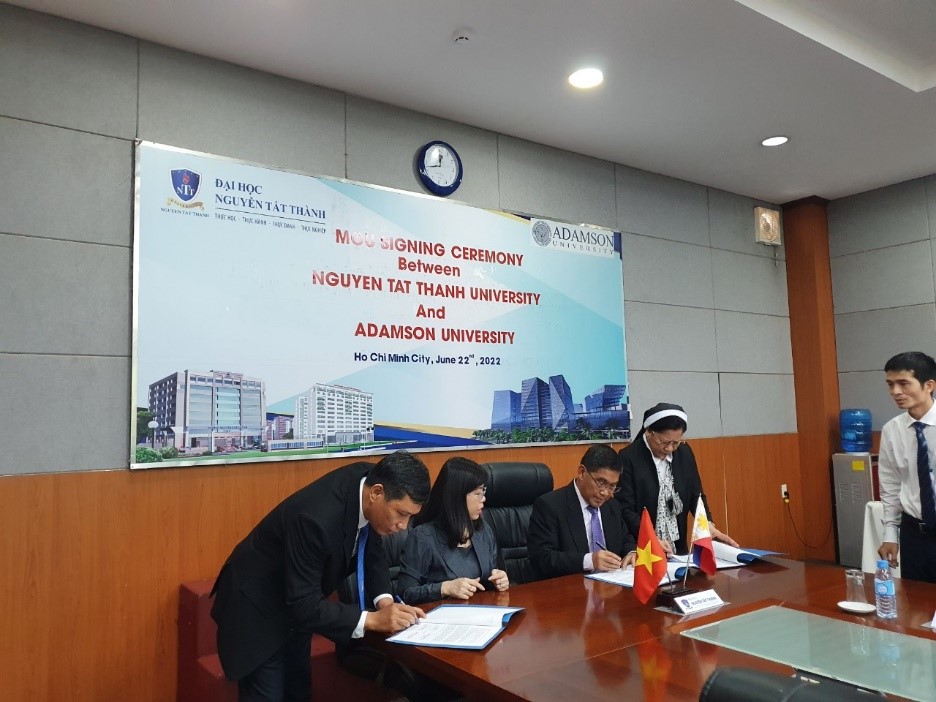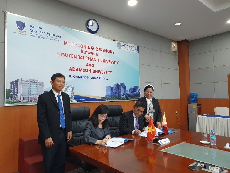 Sáng ngày 22/06/2022 tại cơ sở 300A Nguyễn Tất Thành, TS. Trần Ái Cầm, Hiệu trưởng trường Đại học Nguyễn Tất Thành (NTTU) cùng Cha sứ Marcelo V. Manimtim, Hiệu trưởng trường Đại học Adamson (AdU), Philipines, đã tiến hành trao đổi và tiến hành ký kết hợp tác giáo dục dựa trên thế mạnh của hai trường.